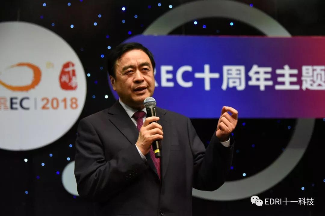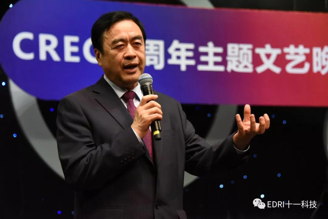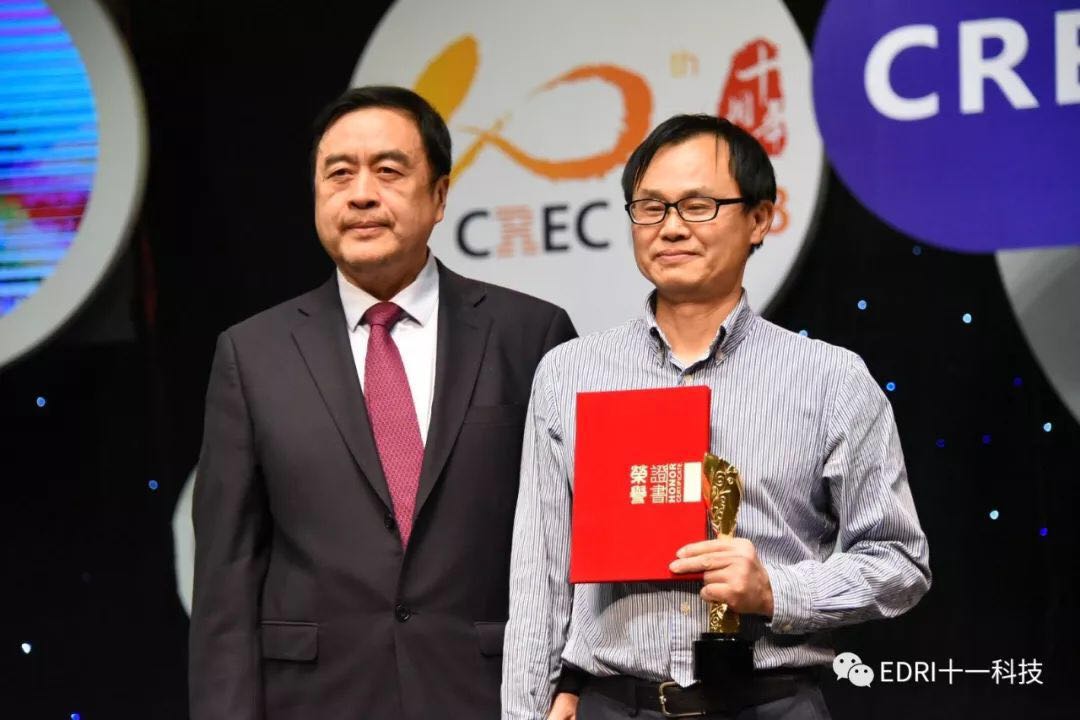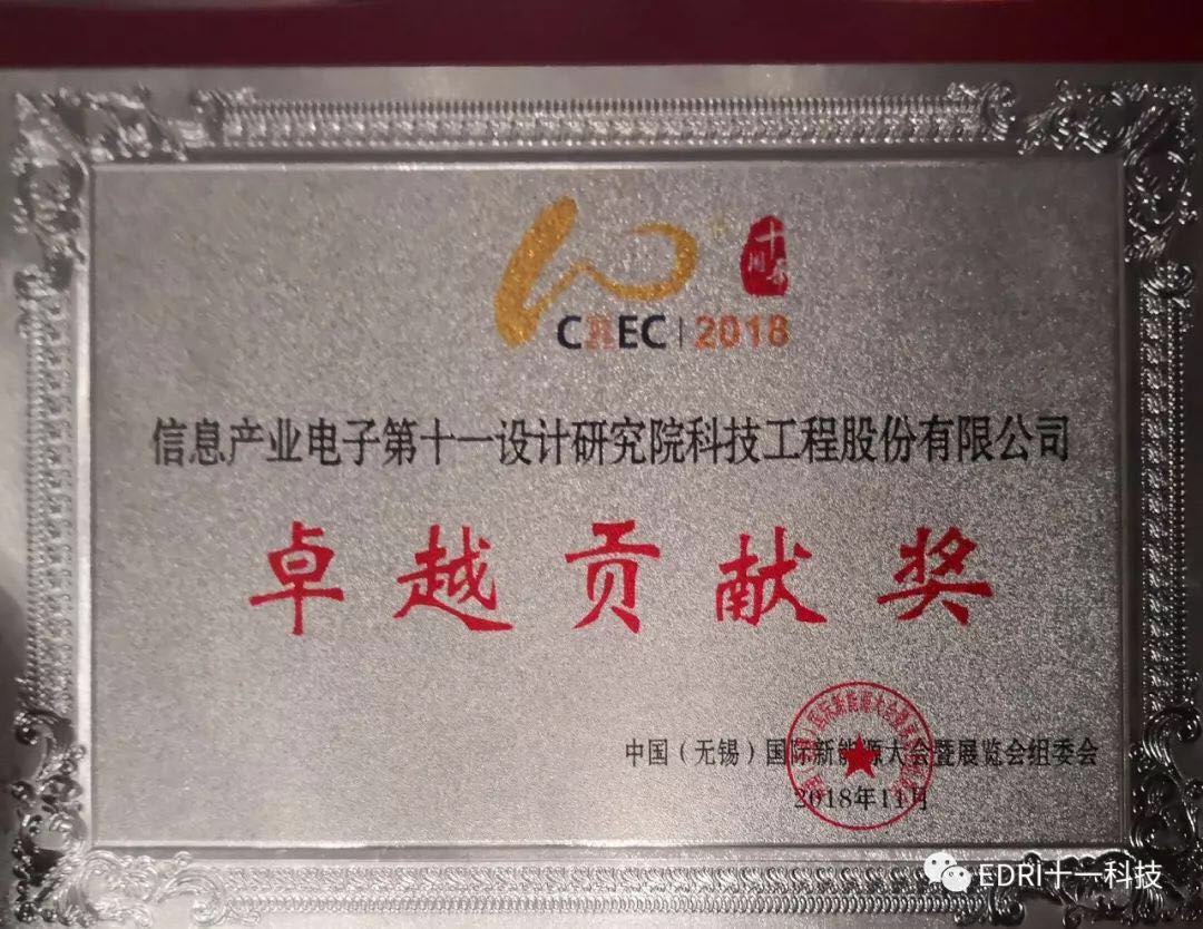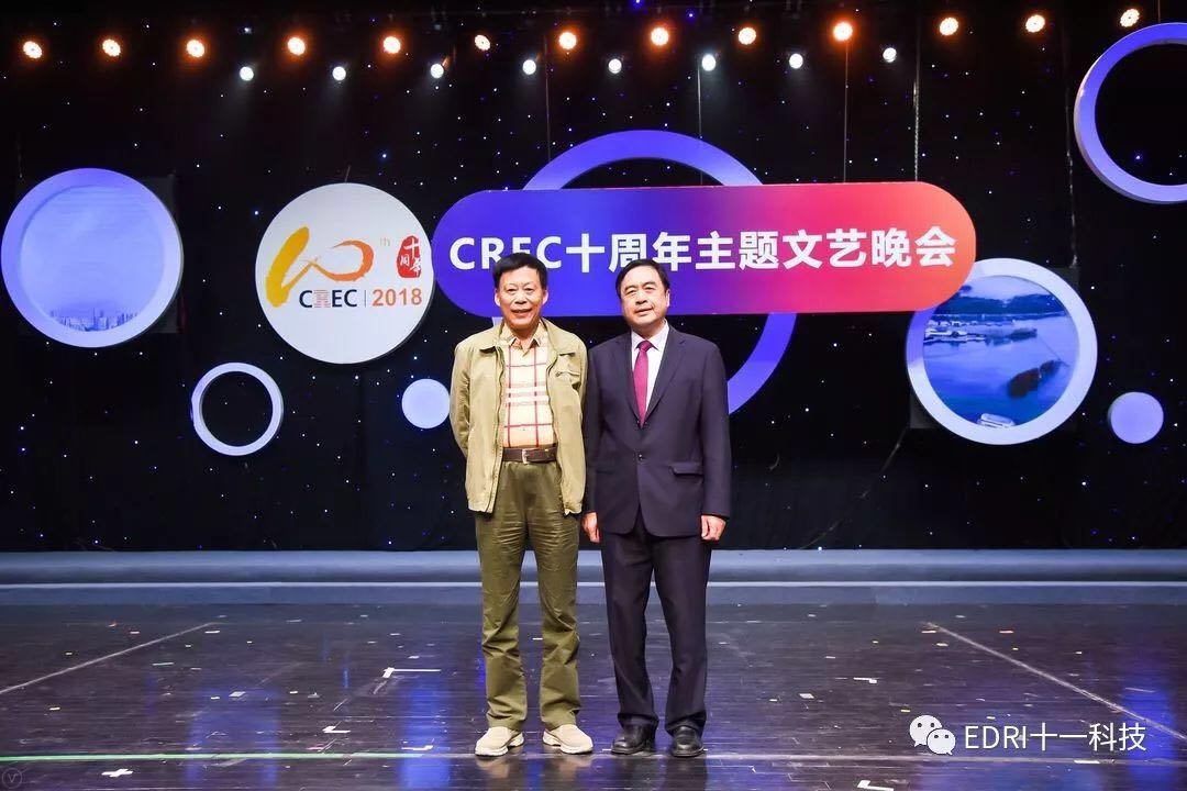 十一科技榮獲CREC十周年“卓越貢獻獎”企業,趙振元同志榮獲CREC十周年“卓越貢獻獎”個人,余才志同志代表十一科技上臺領獎。