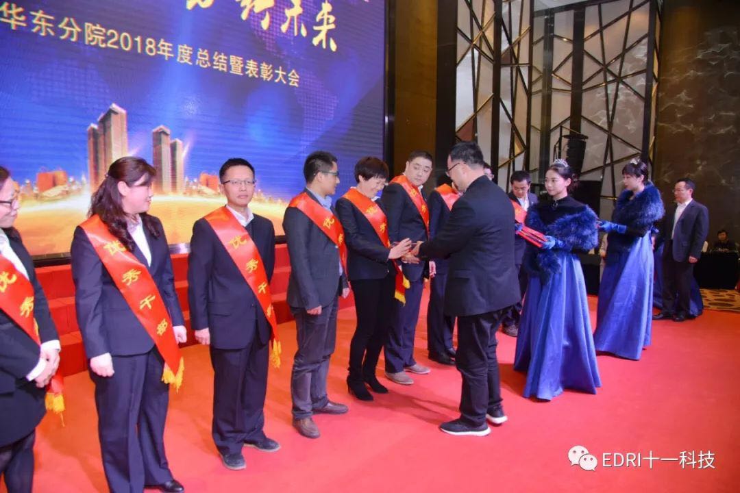 表彰環(huán)節(jié),由華東分院執(zhí)行院長(zhǎng)張平主持,十一科技高級(jí)專務(wù)、華東分院黨總支書記劉勝春首先宣讀了華東分院2018年度表彰文件,全體參會(huì)人員集體觀看了表彰視頻,短短9分鐘視頻,高度概括了受表彰人員的先進(jìn)事跡。會(huì)上共表彰了2018年度優(yōu)秀團(tuán)隊(duì)2個(gè)、2018年度最佳項(xiàng)目組2個(gè)、2018年度優(yōu)秀干部10名、2018年度巾幗風(fēng)采5名、2018年度最佳市場(chǎng)開發(fā)人員5名、2018年度最佳新人獎(jiǎng)6名、2018年度優(yōu)秀后勤人員2名、2018年度先進(jìn)個(gè)人36名。在熱烈的氣氛中,68名受表彰人員身披紅綬帶,分批走上舞臺(tái),接過(guò)院領(lǐng)導(dǎo)頒發(fā)的獎(jiǎng)杯和證書。