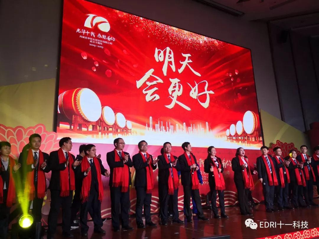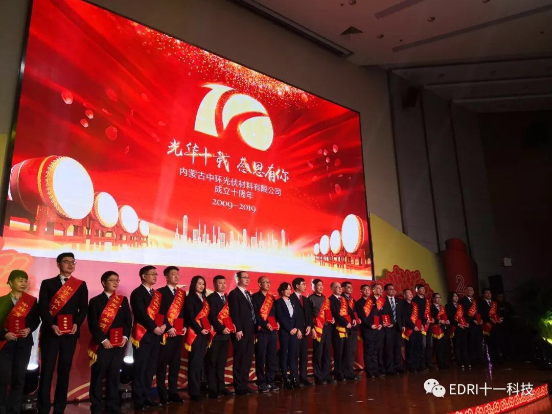 2019年3月10日下午,中環股份隆重舉行“內蒙中環成立十周年慶活動”,中環集團總經理、中環股份董事長、總經理沈浩平,中環股份黨委書記安艷清,中環集團總經濟師楊永生出席活動,趙振元、曹建偉、何俊、徐彬等作為主嘉賓應邀出席?;顒釉趦让芍协h二期報告廳舉行,由中環股份副總經理、內蒙中環光伏材料有限公司董事長江云主持,近500人出席慶典活動。
