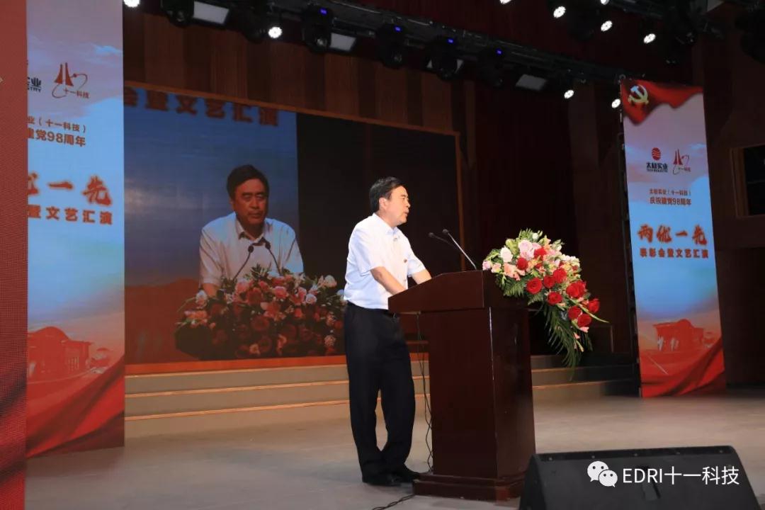 中共嘉興市委副秘書長沈丁華,中共南湖區(qū)委常委、宣傳部長黃國強,南湖區(qū)人大常委會副主任黃敏,南湖區(qū)人民政府副區(qū)長霍忠華,中共嘉興市委黨校副校長、紅船干部學院副院長徐連林,太極實業(yè)董事長、十一科技董事長、黨委書記趙振元,太極實業(yè)副董事長、總經(jīng)理、黨委書記孫鴻偉,太極實業(yè)黨委副書記、副總經(jīng)理、紀委書記、工會主席楊少波,海太半導(dǎo)體副總經(jīng)理褚兵,太極實業(yè)獨立董事叢亞東、徐雁清,太極半導(dǎo)體總經(jīng)理張光明,太極實業(yè)董秘、十一科技監(jiān)事會副主席李佳頤,浙江省太陽能行業(yè)協(xié)會副秘書長沈福鑫,四川省歌舞劇院創(chuàng)作室主任、著名作曲家彭濤,嘉興市南湖區(qū)文聯(lián)副主席、南湖區(qū)作家協(xié)會主席俞華良,嘉興市南湖區(qū)黨政部門領(lǐng)導(dǎo),十一科技院長、黨委副書記何平,高級副院長、黨委副書記姚虹,高級副院長王毅勃、白焰、王利、余才志、季超,紀委書記萬鋒,高級專務(wù)劉勝春,受表彰的太極實業(yè)優(yōu)秀黨員、黨務(wù)工作者、基層黨支部代表,太極實業(yè)本部、太極半導(dǎo)體、海太半導(dǎo)體的黨代表及職工代表,十一科技總部及各分院的領(lǐng)導(dǎo)、黨代表及職工代表,共400余人濟濟一堂。活動分為上下篇章兩部分,譜寫出太極實業(yè)(十一科技)“喜迎建黨98周年”的和諧禮贊。