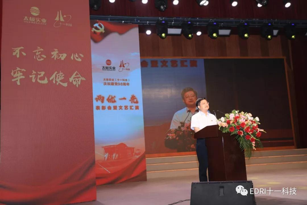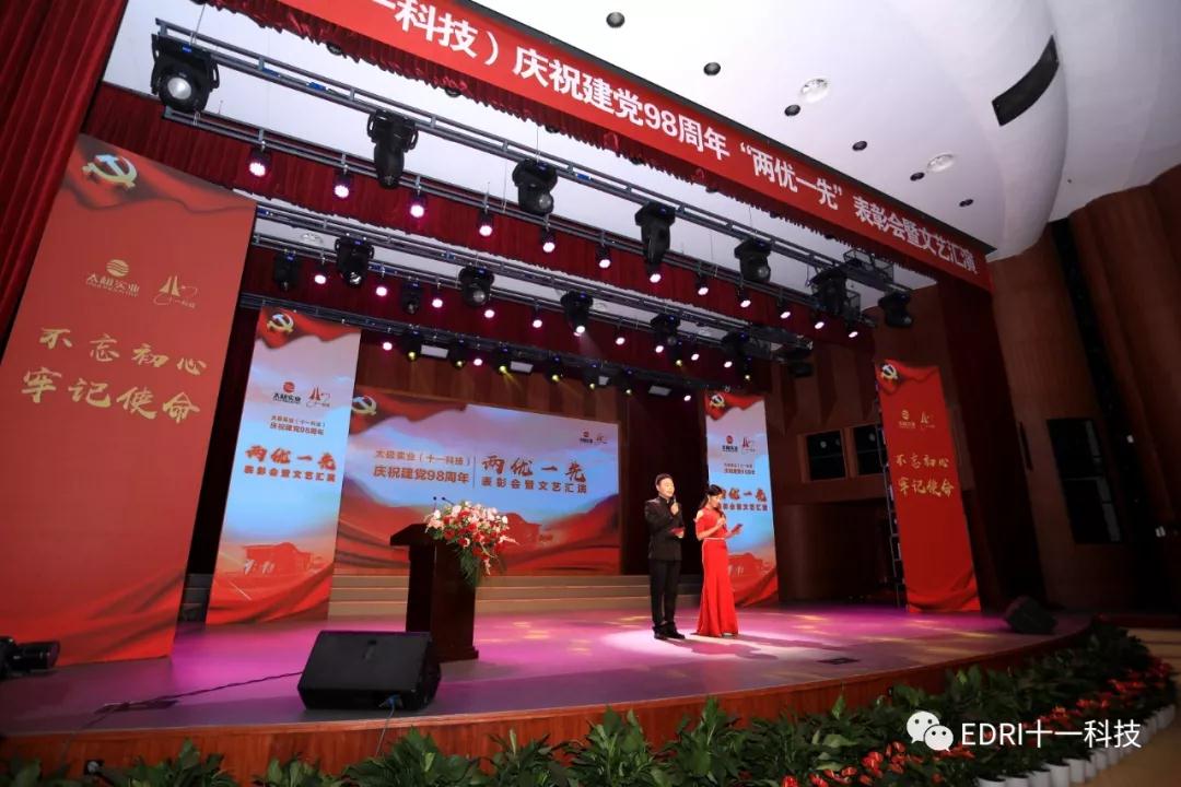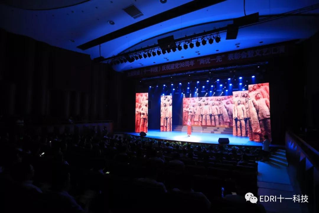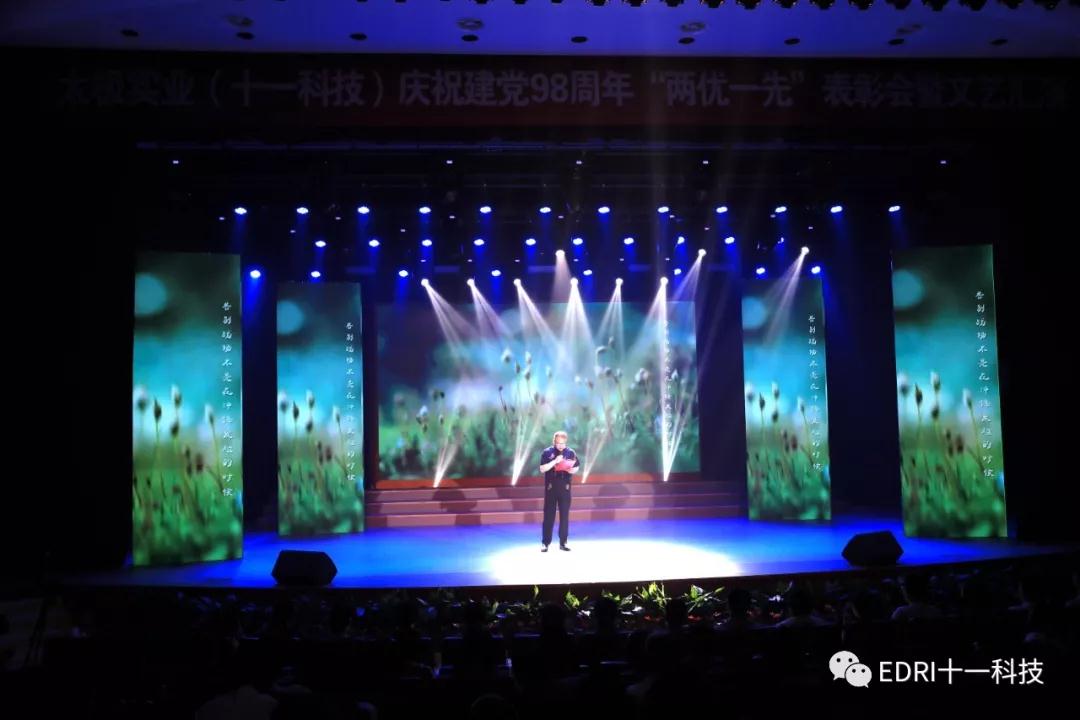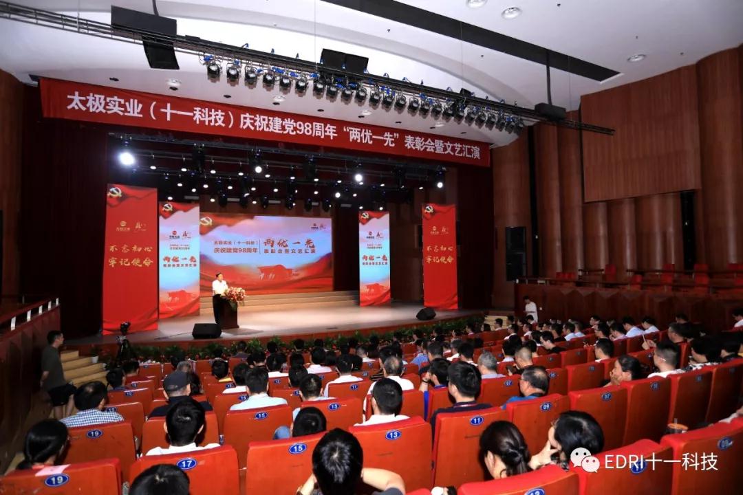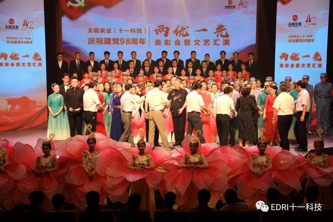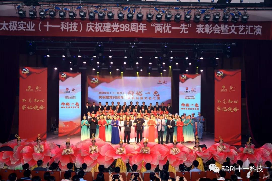 6月16日晚,浙江嘉興南湖音樂廳,紅色炫動,太極實業(yè)(十一科技)慶祝建黨98周年“兩優(yōu)一先”表彰會暨文藝匯演,華美上演。