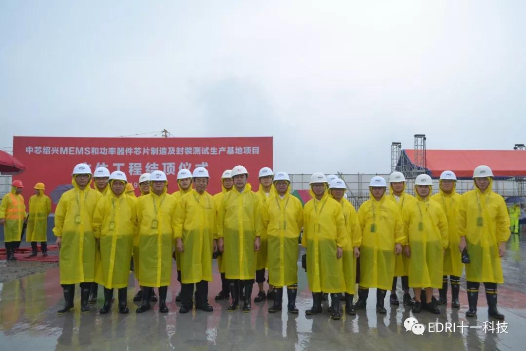 中芯紹興項目在雨中進行封頂儀式