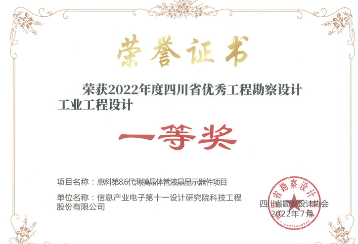 惠科第8.6代四川省一等獎(jiǎng)